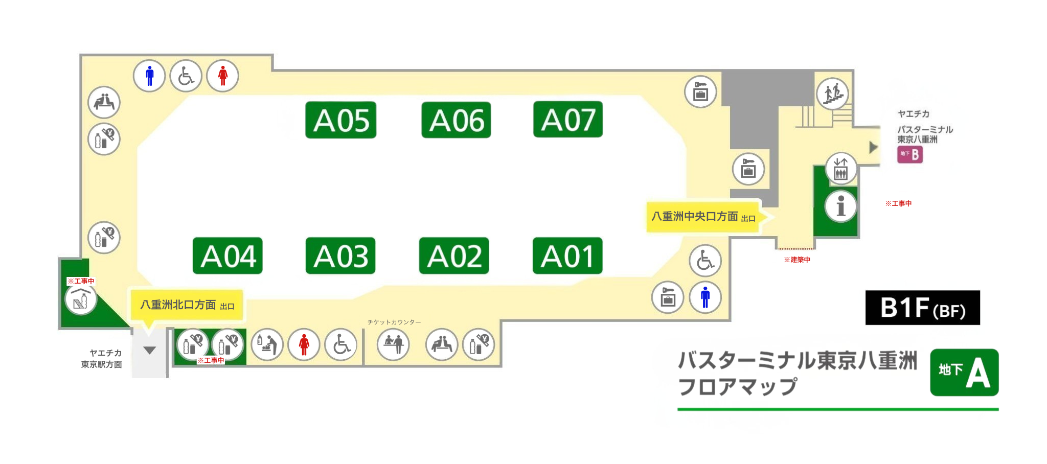 ※「地下B」エリアのチケットカウンターにおいても6:20~20:00の間に同乗車券を取り扱っています。
