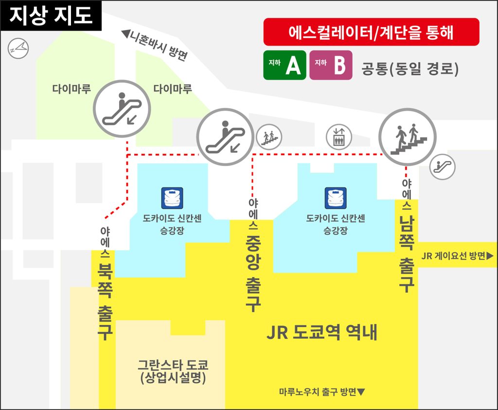 ※「지하 A」「지하 B」 사이의 이동은 지상을 경유해 주십시오.