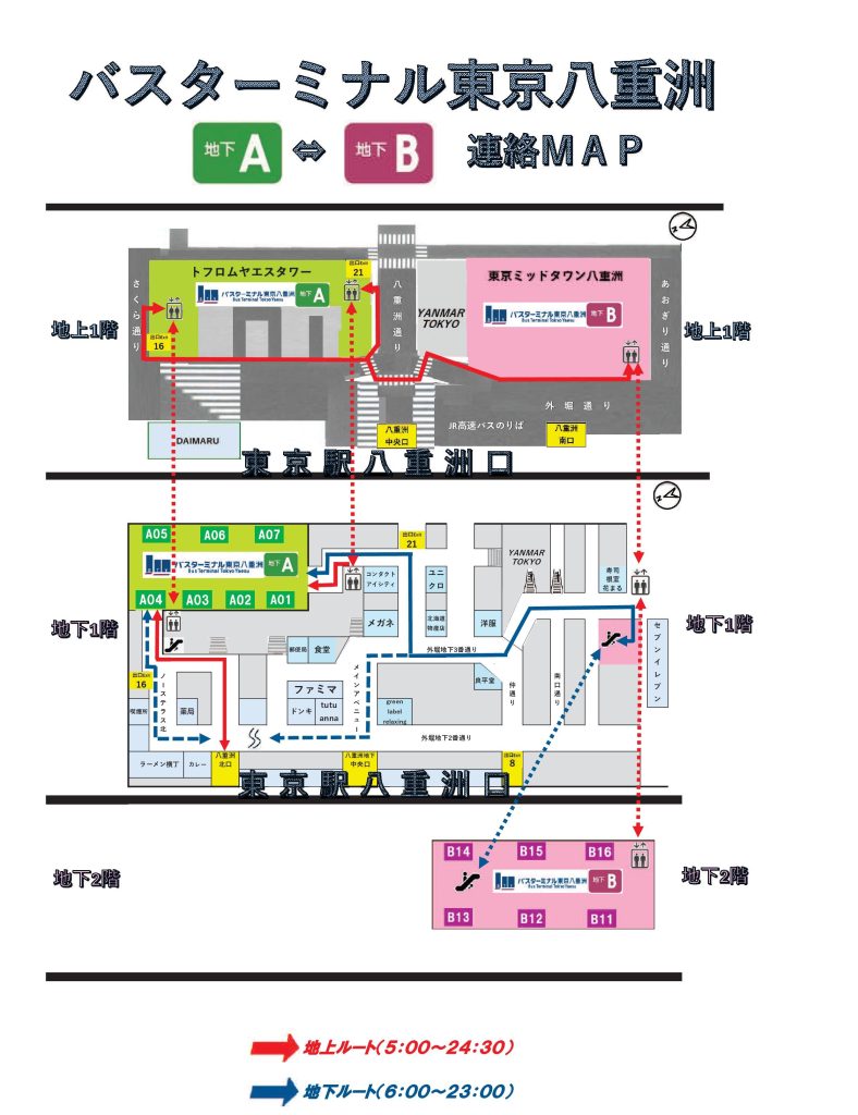バスターミナル東京八重洲地下A・地下Bへのアクセスはこちら